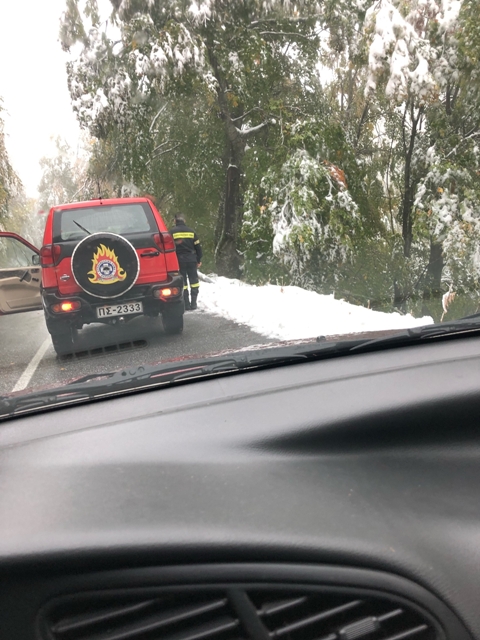 Κακοκαιρία "Μπάλλος": Χαμός με τις πτώσεις δέντρων στα ορεινά της Φλώρινας- έκλεισε η οδός Φλώρινας-Βιτσίου- εγκλωβίστηκε οδηγός (pics)