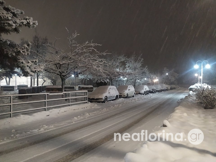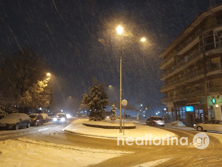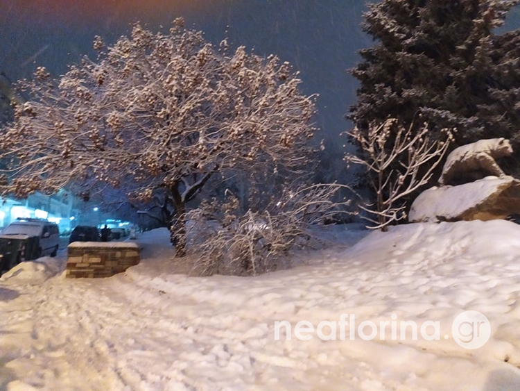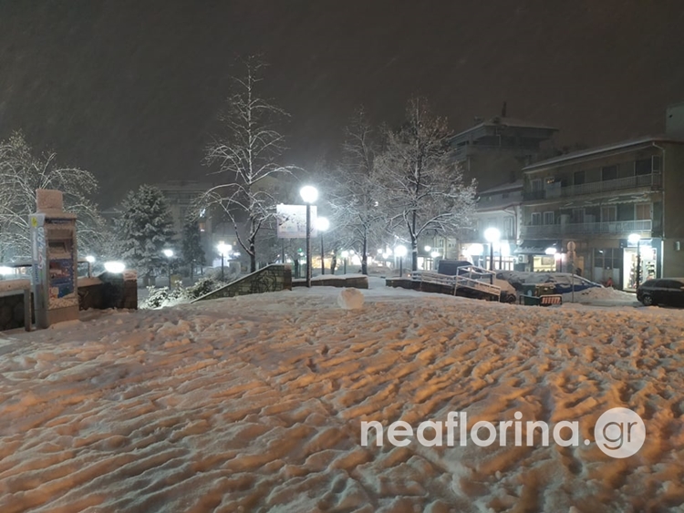 Δείτε παρακάτω εικόνες από τη νυχτερινή και χιονισμένη πόλη της Φλώρινας: