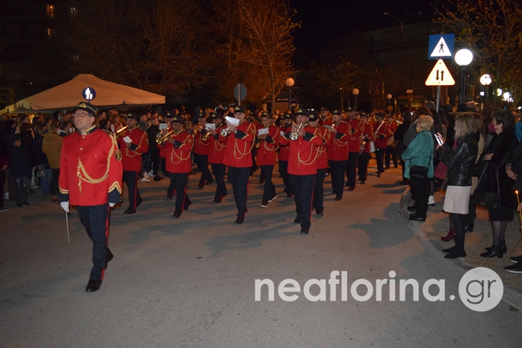 Υπό τους ήχους της Φιλαρμονικής του Δήμου Φλώρινας ο Επιτάφιος κατευθύνθηκε παραποταμίως προς την κεντρική πλατεία της πόλης και επέστρεψε πίσω στο Ναό μέσω κεντρικών οδών.