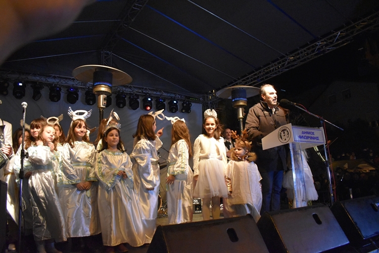 Νωρίτερα, η Φιλαρμονική του Δήμου Φλώρινας έπαιξε Χριστουγεννιάτικα τραγούδια, ενώ υπήρχαν και δράσεις για τα παιδιά με τον Άη Βασίλη, τα ξωτικά και τους ξυλοπόδαρους.
