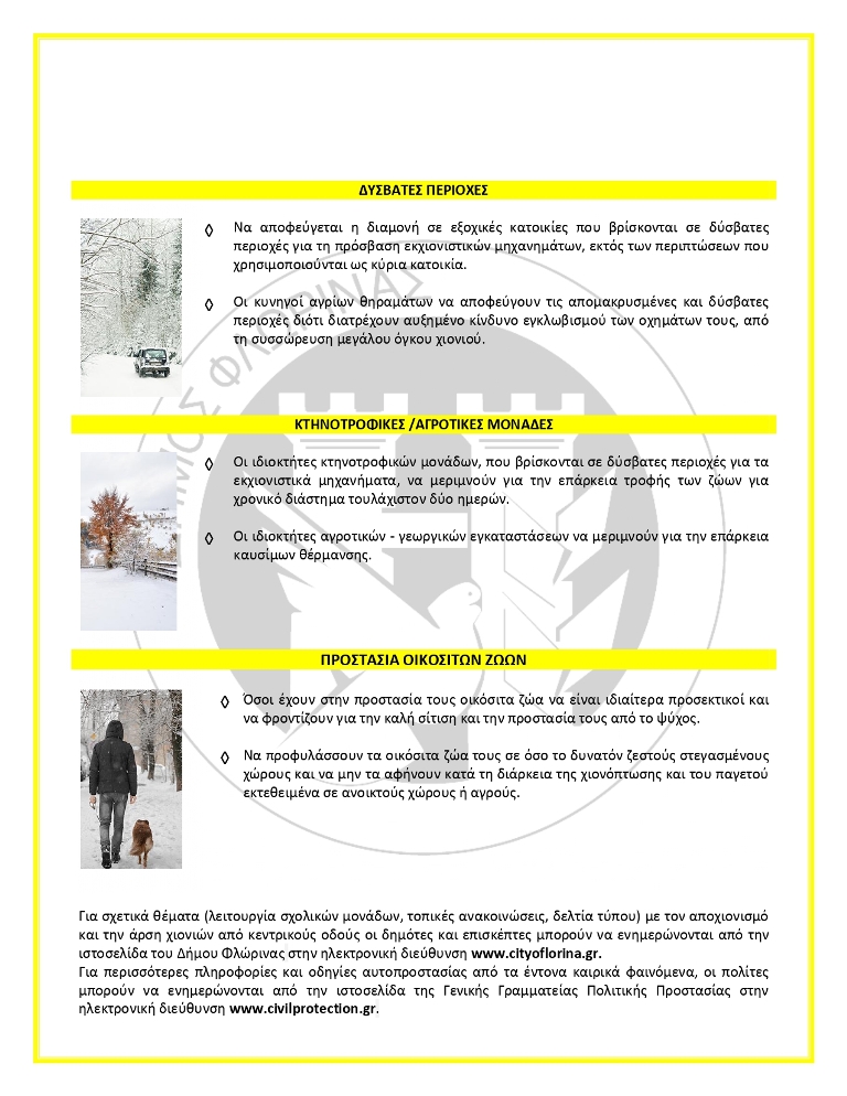 Για την πρόληψη προβλημάτων που πιθανόν να παρουσιαστούν, παρακαλούμε τους δημότες και επισκέπτες να ακολουθήσουν τις σχετικές οδηγίες.